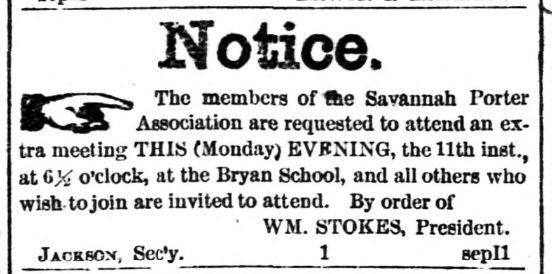 The Bryan Free School had as many as 450 students. James Porter became the principal of the school; while he later went on to helm the West Broad Street School and would soon be elected to the Georgia State Legislature, in early 1865 the Bryan Free School represented a high point for him, for the SEA and for Savannah’s African-American community. Porter had come to Savannah in 1856 and risen quickly to become one of the Savannah’s most prominent figures within the freedmen community. As Charles Hoskins noted: