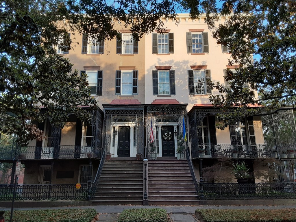 The Augustus Wetter House appears to have had its beginnings in or about 1822, but it was in 1857 that the house began to assume the more iconic appearance found in surviving images today. Built at the corner of South Broad (today Oglethorpe) and West Broad (today MLK) the house remains one of the lost treasures of Savannah, though its distinctive balcony fence-work survived and may still be found around town at Chippewa Square or around the gryphon statue at the Cotton Exchange. Having previously occupied sites on Greene Square and Madison Square, by 1891 the Savannah Female Orphanage purchased the property, remaining in possession of the lot until 1950, at which point the lot was bought by a Chevrolet dealership. The house was demolished, and until 2016 all that remained on the empty, former car lot was the old outbuilding at the back used in the day as a sales office.