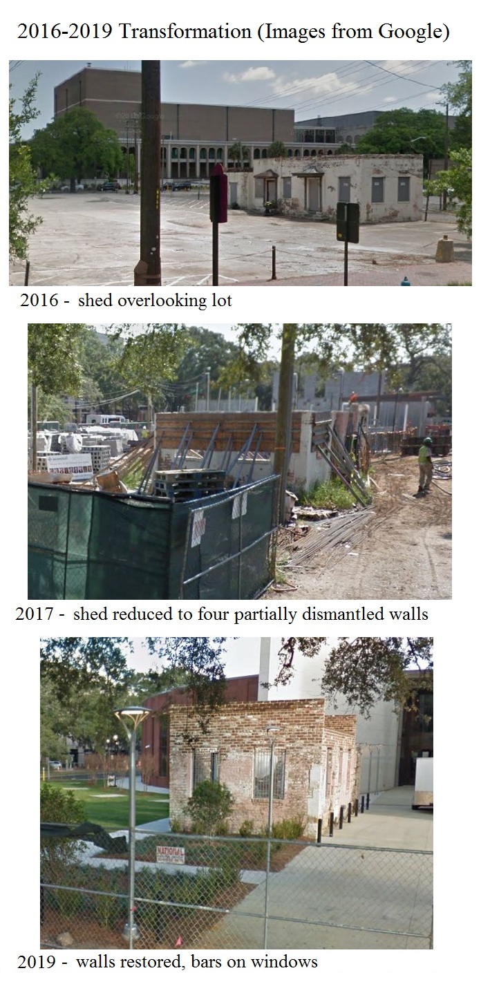 In the 2010s, as plans developed to build the Cultural Arts Center, it was decided to save the one remaining 19th century structure on the lot, while also restoring it as closely as could be ascertained to its original configuration. This entailed reducing it to its 19th century footprint and resorting to Sanborns to determine its original size.